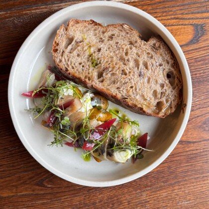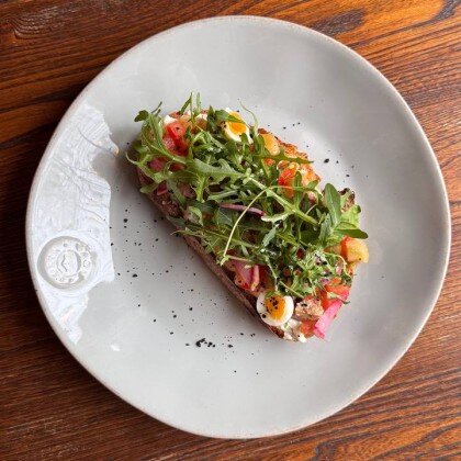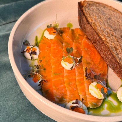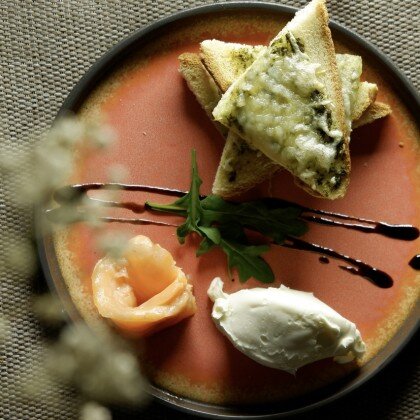Маринованный лосось с французским гречишным тартином