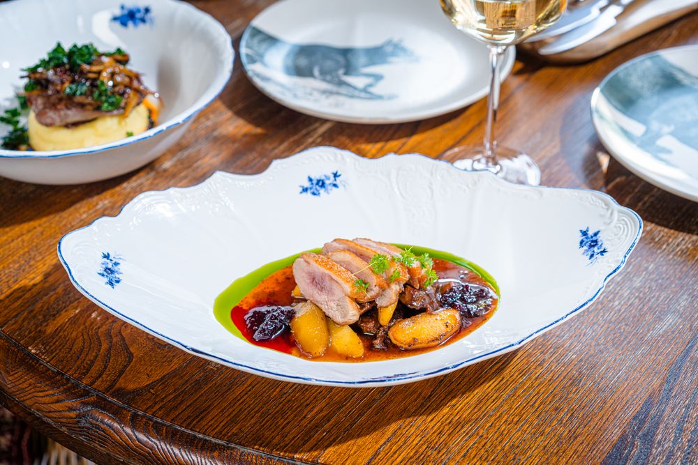 Говяжья вырезка с арахисовым пюре и карамелизированными вешенками