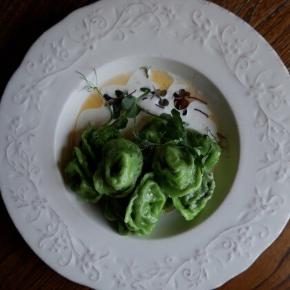 Ярушки со шпинатом и сыром с кремом из лайма и сыра