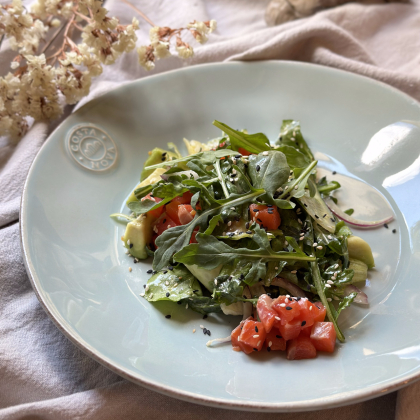 Салат с лососем и авокадо в кунжутном соусе