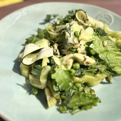 Салат из зелёных овощей на творожном креме с кешью