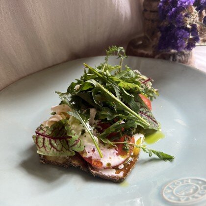 Цукини с фермерской сливочной страчателлой и розовыми томатами