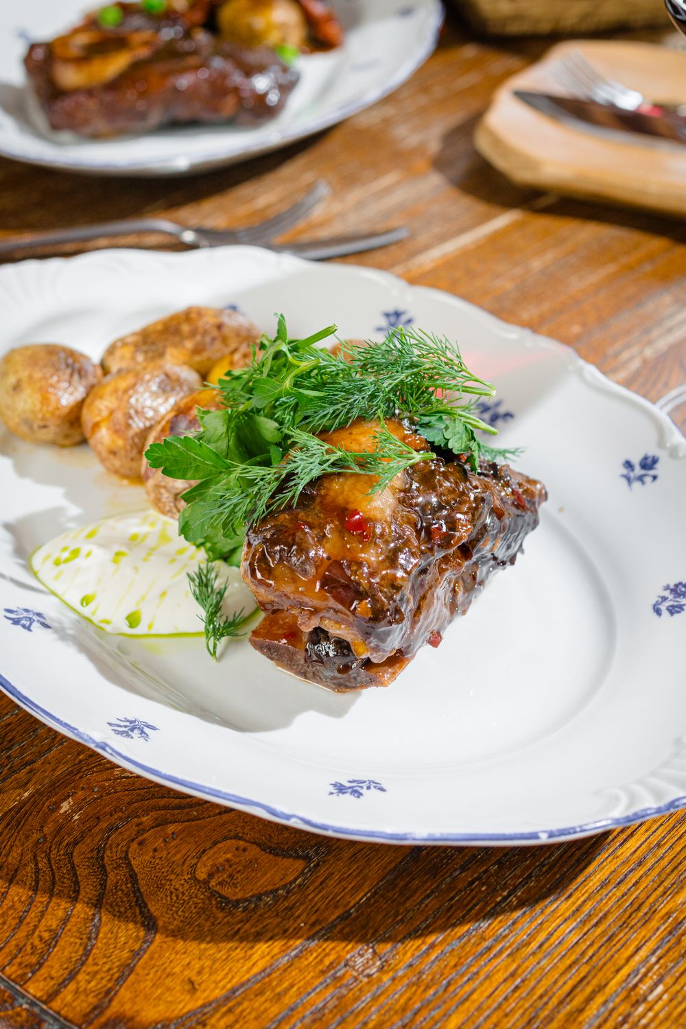 Томленые говяжьи щёки с булгуром